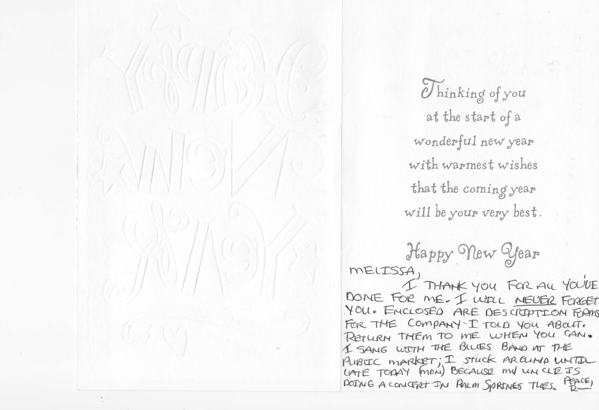 I thank you for all you’ve done for me. I will NEVER FORGET you. Enclosed are DES cription forms for the company I told you about. Return them to me when you can.