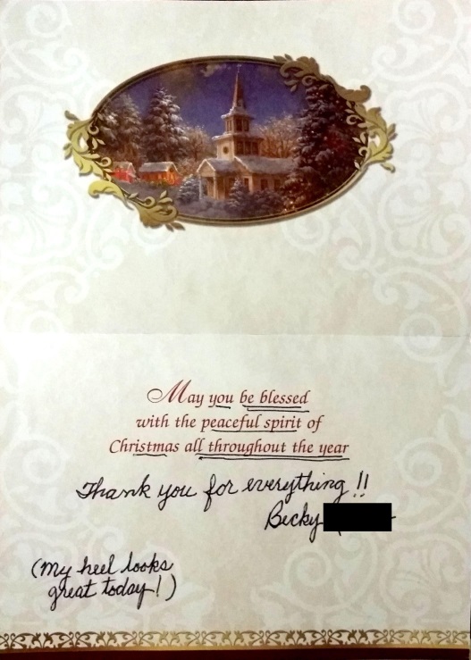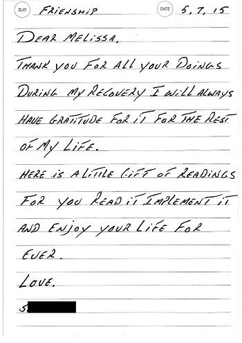 Thank you for all your doings during my recovery. I will always have gratitude for it for the rest of my life.