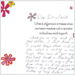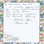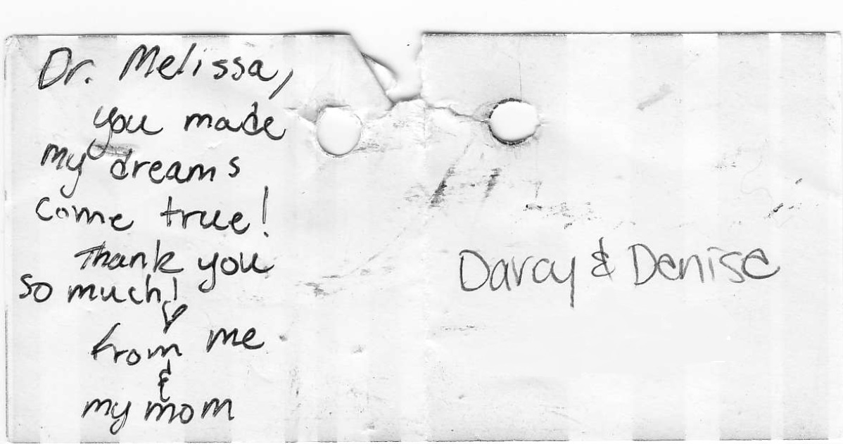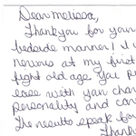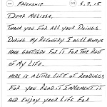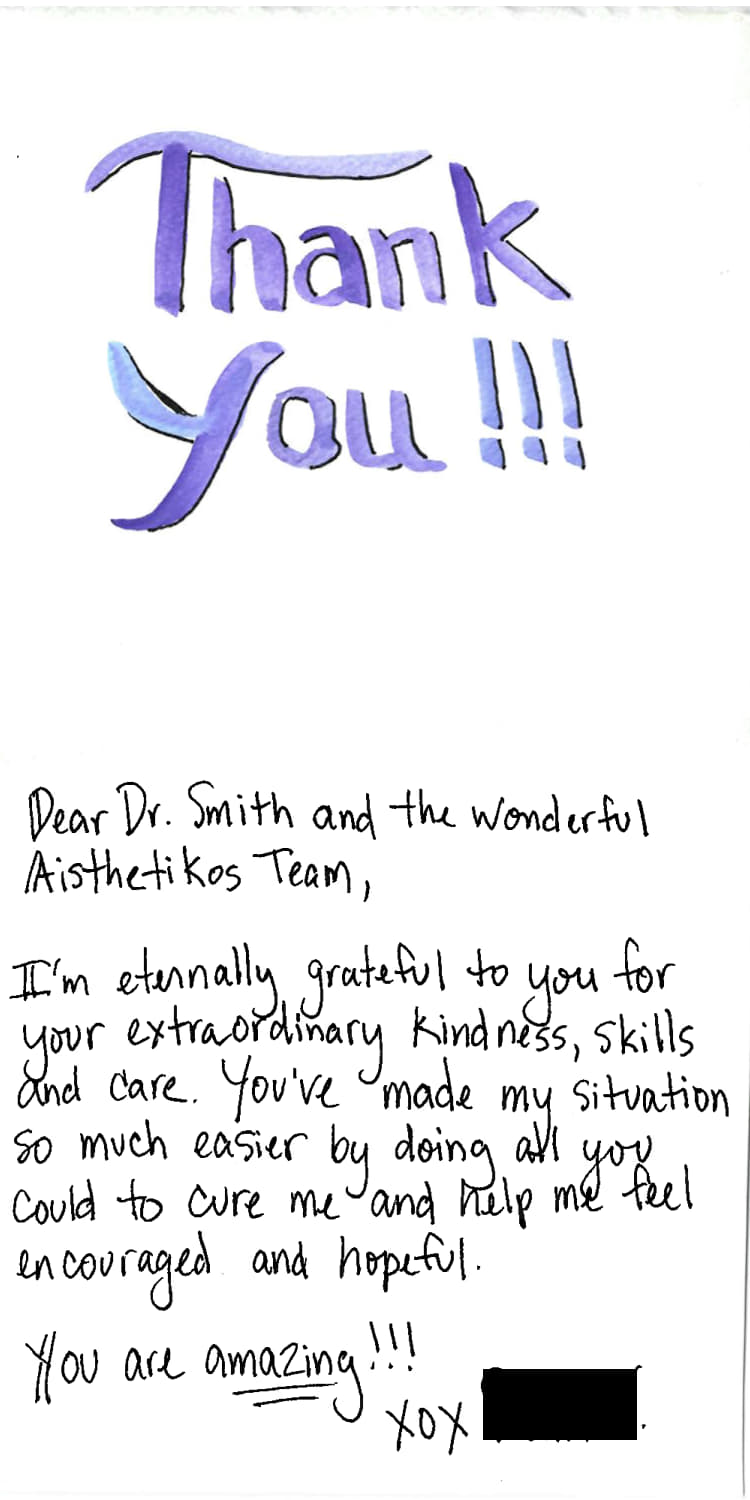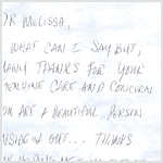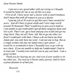 I am not a very good talker without crying so I thought. It would be better for me to say all this in a note. First of all, I have never met a doctor with so much kindness and I mean that with all respect to you as a doctor.